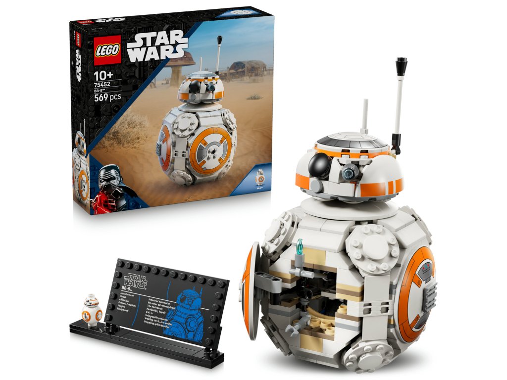 Nenechte si ujít úchvatnou roztomilou stavebnici LEGO® Star Wars™ Astromechanický droid BB-8™ pro děti. Zachyťte autentické detaily ikonického droida z filmu Star Wars: Síla se probouzí pomocí kostek LEGO. Pohybujte figurkou BB-8 po rovném povrchu a roztočte jeho hlavu náhodnými směry. Otevřením poklopu na těle BB-8 odhalíte „ruku s hořákem“ jako ze scény, kdy ukázal „palec nahoru“ Finnovi.