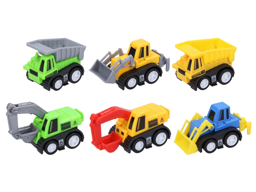 Plastová autíčka na zpětné natažení potěší všechny malé stavitele! Práce na stavbě s těmito malými pomocníky půjde raz dva!