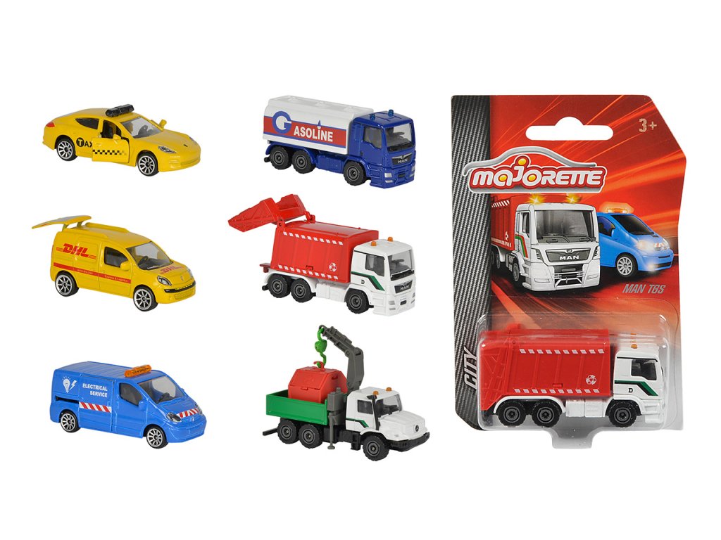 z řady City na volnoběh. Otevírací a/nebo pohyblivé části. Délka 7,5 cm. 6 druhů.