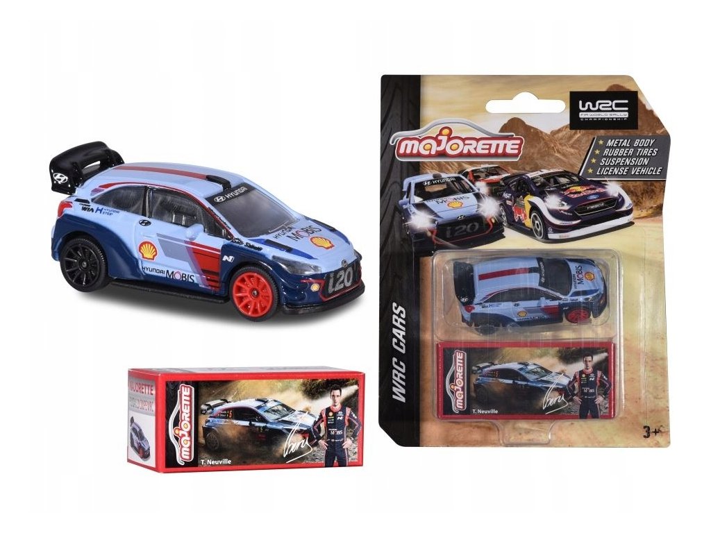 Kovové autíčko na volnoběh v oficiální licenci WRC. Gumové pneu, součástí je sběratelský box s obrázkem originálního auta a jméno a podpis řidiče. Délka autíčka: 7,5 cm.