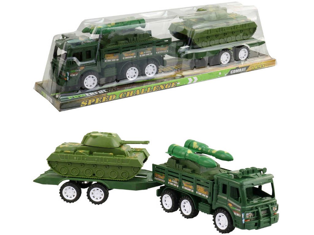 Vojenský plastový set s automobilem, přívěsem, obrněným vozidlem a raketometem, pro všechny malé vojáky a bojovníky. Postavte armádu, vyrazte do akce a zničte nepřítele! S tímto herním setem to bude