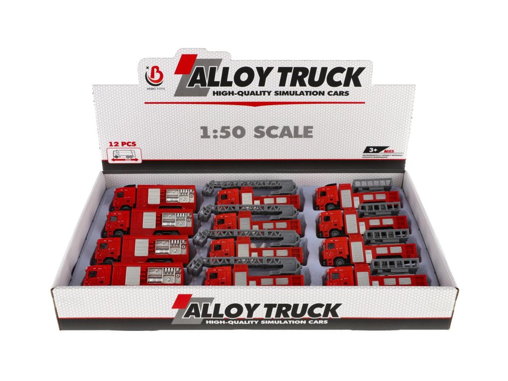 Auto hasiči plast 13-16cm na zpětné natažení 3 druhy 12ks v boxu