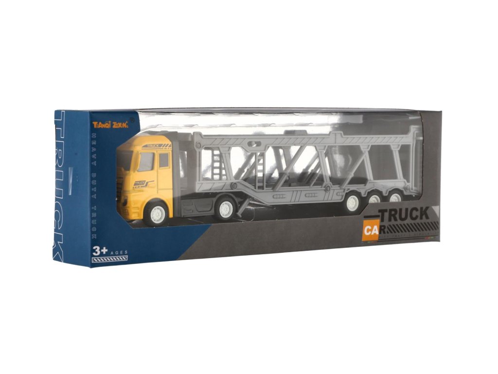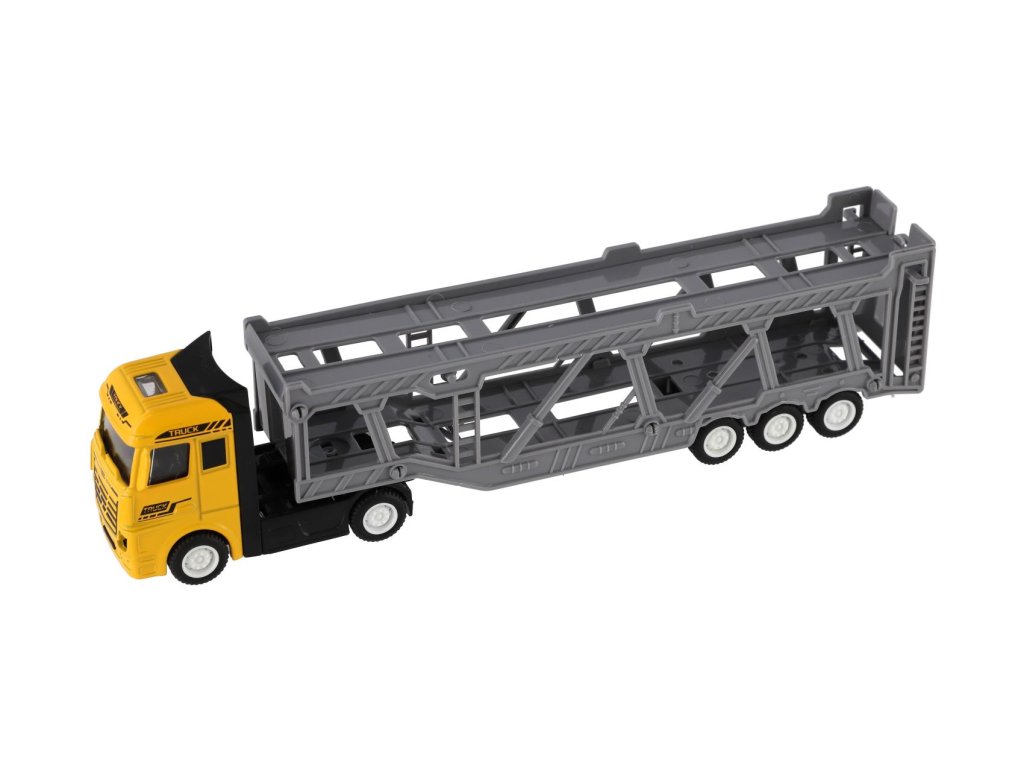Kamion s přepravníkem aut je skvělý dárek pro malé řidiče. Auto je vyrobeno z kvalitního plastu je 22 cm dlouhé.