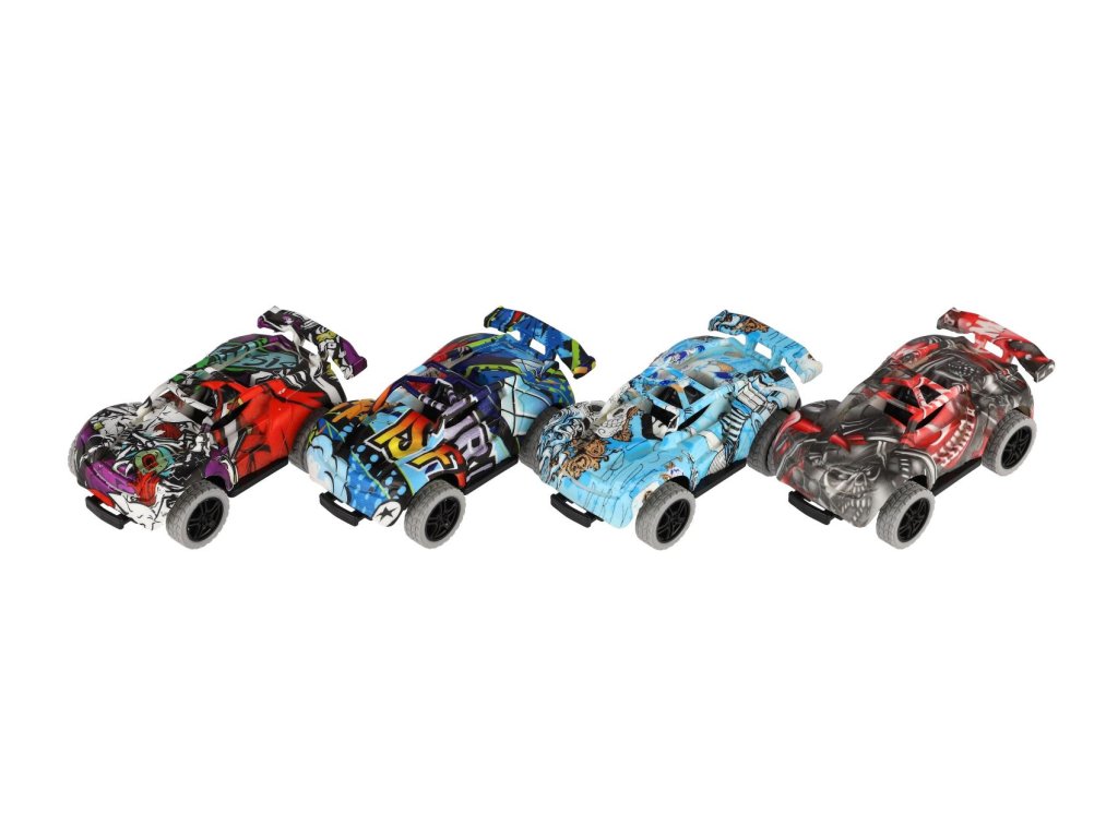 Auto kaskadérské plast 5x9cm na zpětné natažení 4 barvy 12ks v boxu