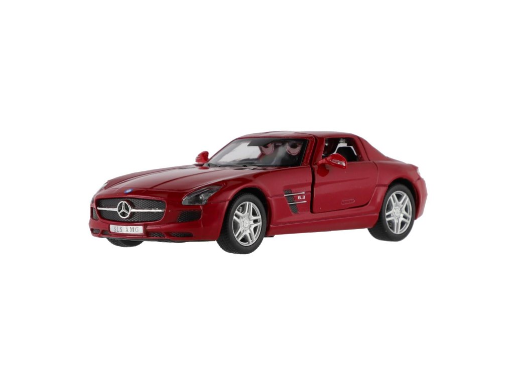 Auto Kinsmart Mercedes-Benz SLS AMG kov/plast 13cm na zpětné natažení 4 barvy 12ks v boxu