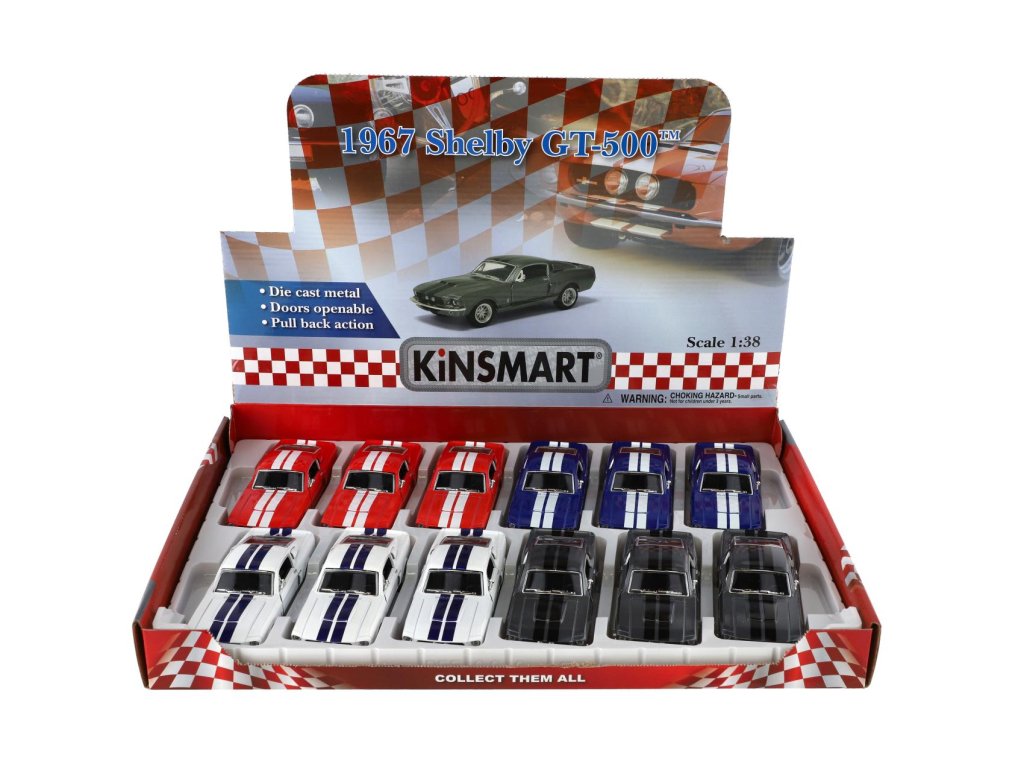 Auto Kinsmart Shelby GT-500 kov/plast 13cm na zpětné natažení 4 barvy 12ks v boxu