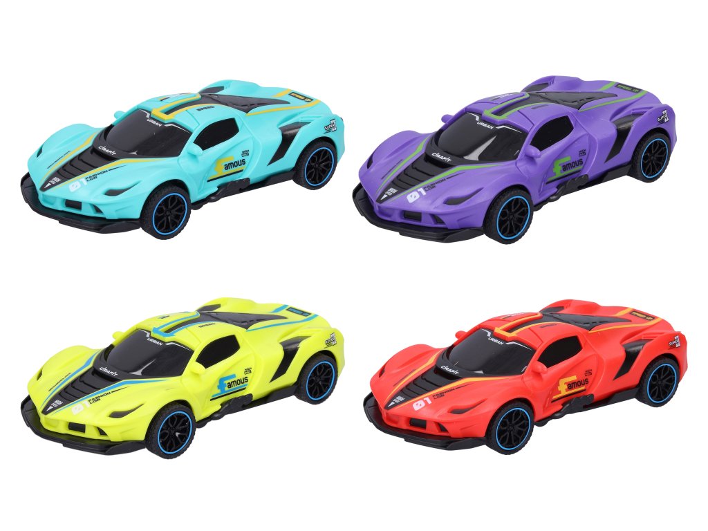 Auto na setrvačník driftovací. Rozměry 15,5x8x4 cm. Display box 8 ks. 4 varianty - zelená, červená, modrá, žlutá.