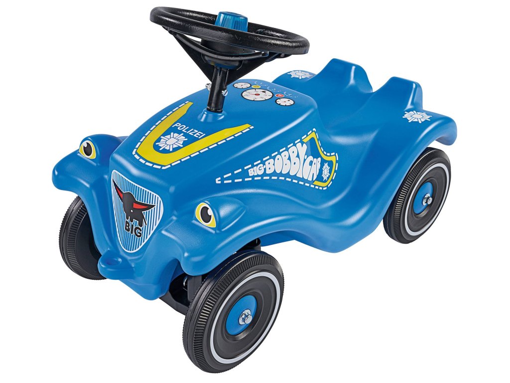 Robustní auto odstrkovadlo s ergonomickým sedadlem v modré barvě s nálepkami policie v 10 různých jazycích. Praktický volant s elektronickým policejním zvukovým a světelným modulem a mechanickým klaksonem. Rozměry: 58 x 30 x 38 cm. Max. nosnost 50 kg. Hmotnost 3,6 kg.
