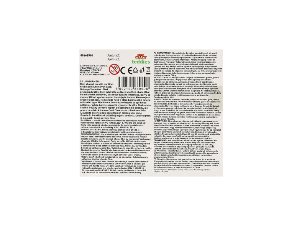 Krásné auto na dálkové ovládání, pro všechny malé závodníky, kteří milují dobrodružství a rychlou jízdu. S tímto super teréňákem budeš zaručeně v cíli jako první! Nastartuj a jeď si pro vítězství! To je rychlost! Hlavně ať se závod obejde bez nehod! Přepínač ON/OFF ze spodní strany auta. USB pro nabíjení auta, 2x AA baterie nejsou součástí balení (ovladač). Frenkvence 27 MHz.