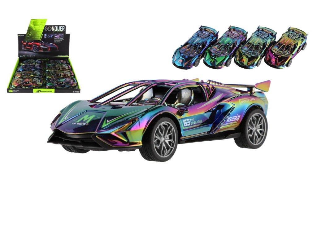 Auto sportovní plast 18cm na setrvačník na baterie se světlem se zvukem 2 barvy 8ks v boxu