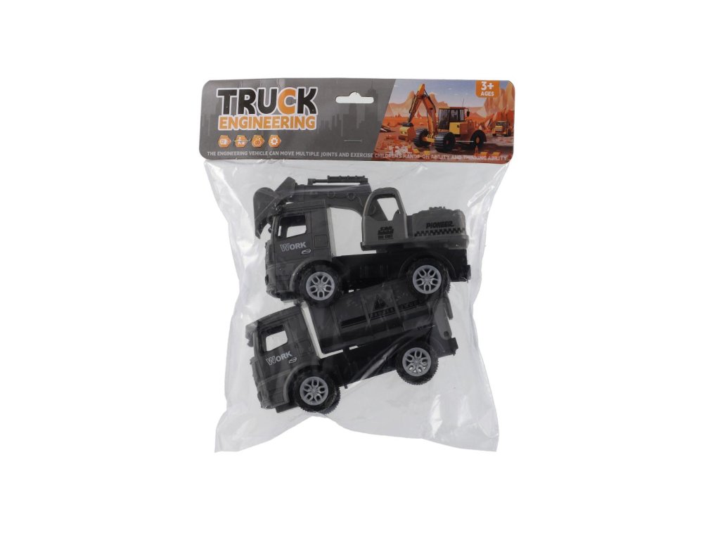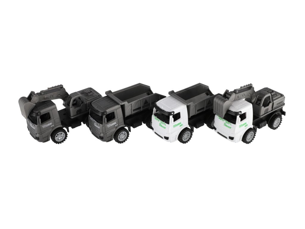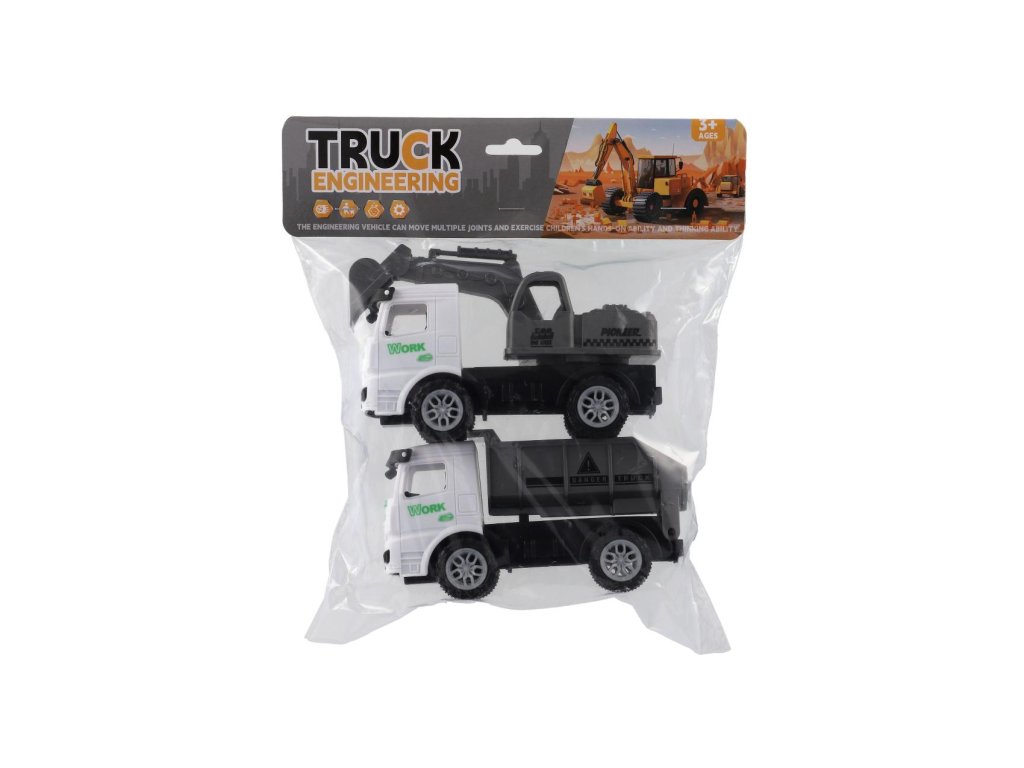 Parádní sada stavebních autíček potěší každého malého stavitele. Obsahuje 2 plastová vozidla o délce 15 cm s pohonem na setrvačník – stačí zatlačit a pustit, a vozidla se rozjedou vpřed. Ideální na hraní doma, na pískovišti nebo na zahradě.