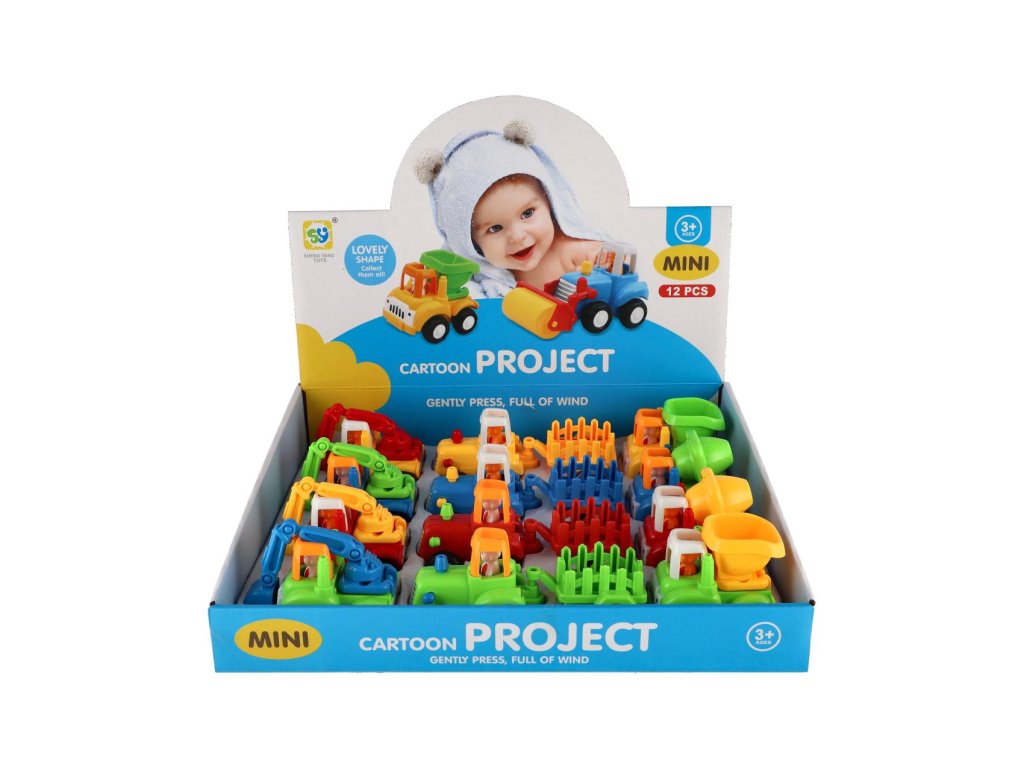 Auto stavební a zemědělské plast 10-16cm na setrvačník mix druhů 12ks v boxu