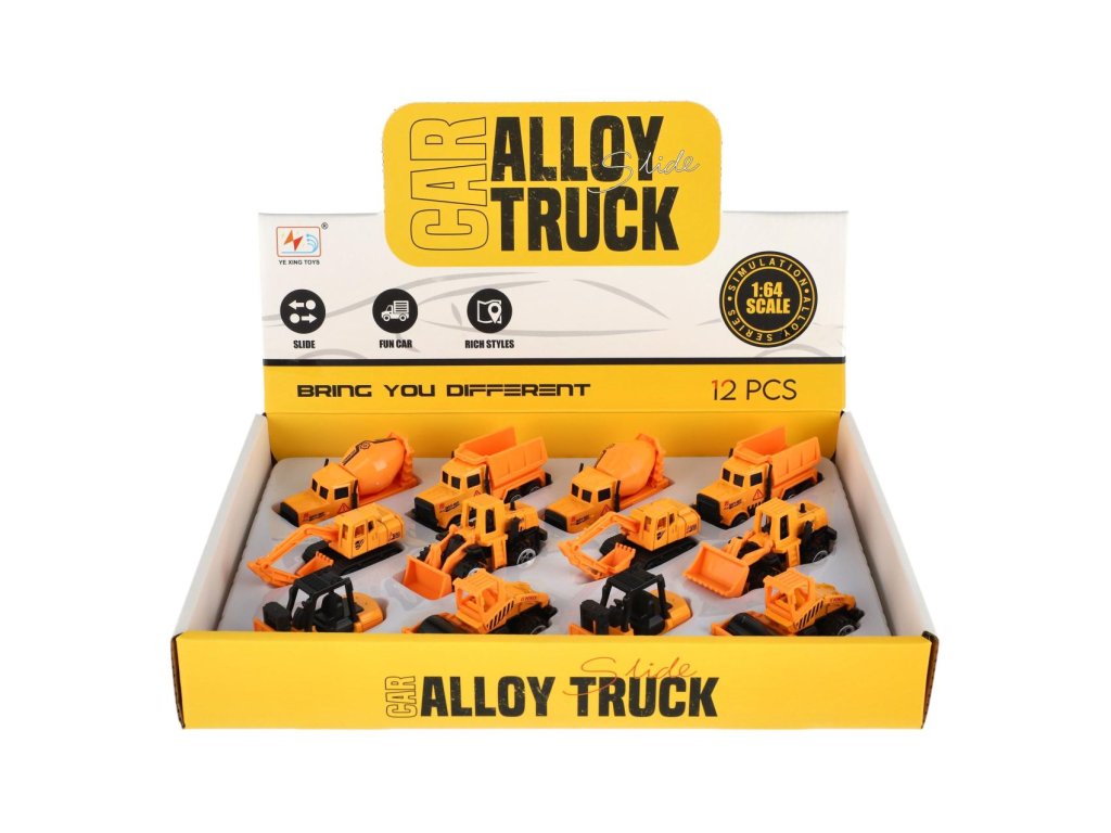 Auto stavební mini kov/plast 7cm volný chod mix druhů 12ks v boxu
