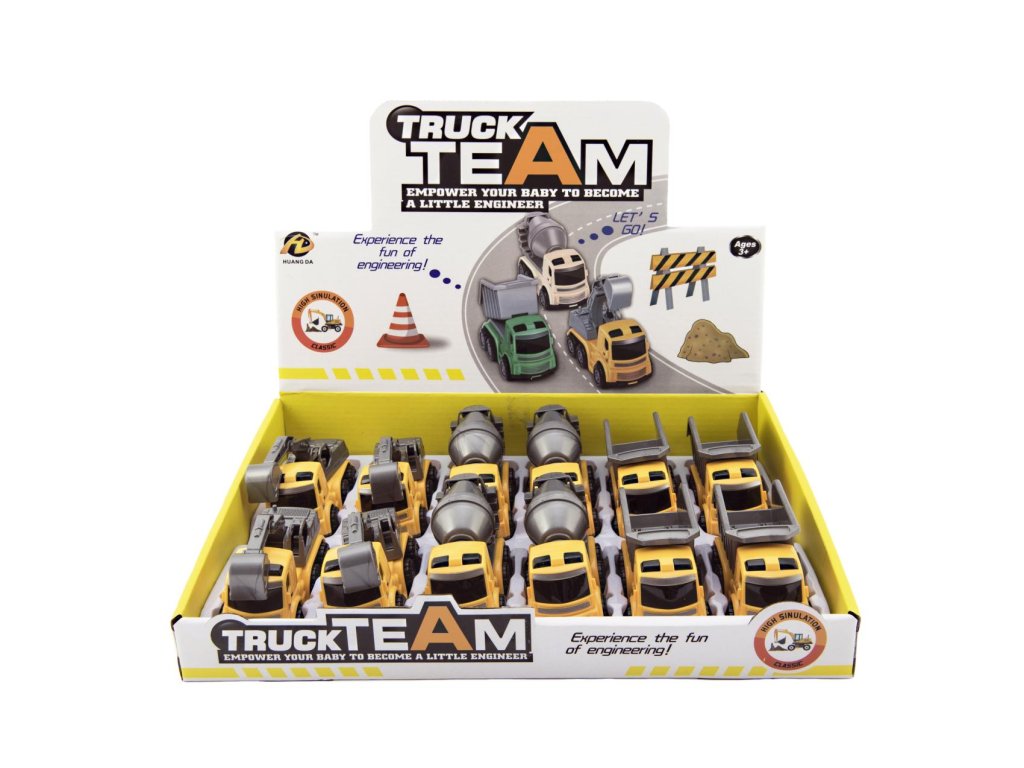 Auto stavební plast na setrvačník 10cm 3 druhy 12ks v boxu