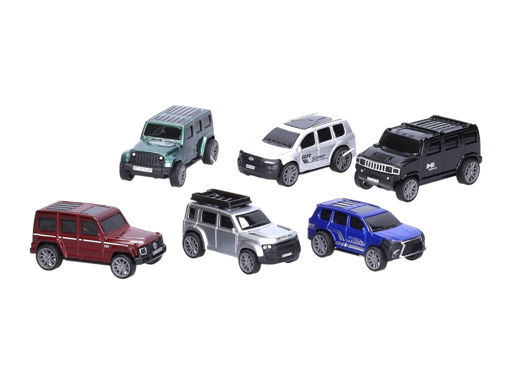 Auto terénní kovové. Rozměry 7,6x3,8x3,5 cm. Na zpětné natažení. 12 ks display box. 6 variant - zelené, červené, černé, bílé, šedé, modré.