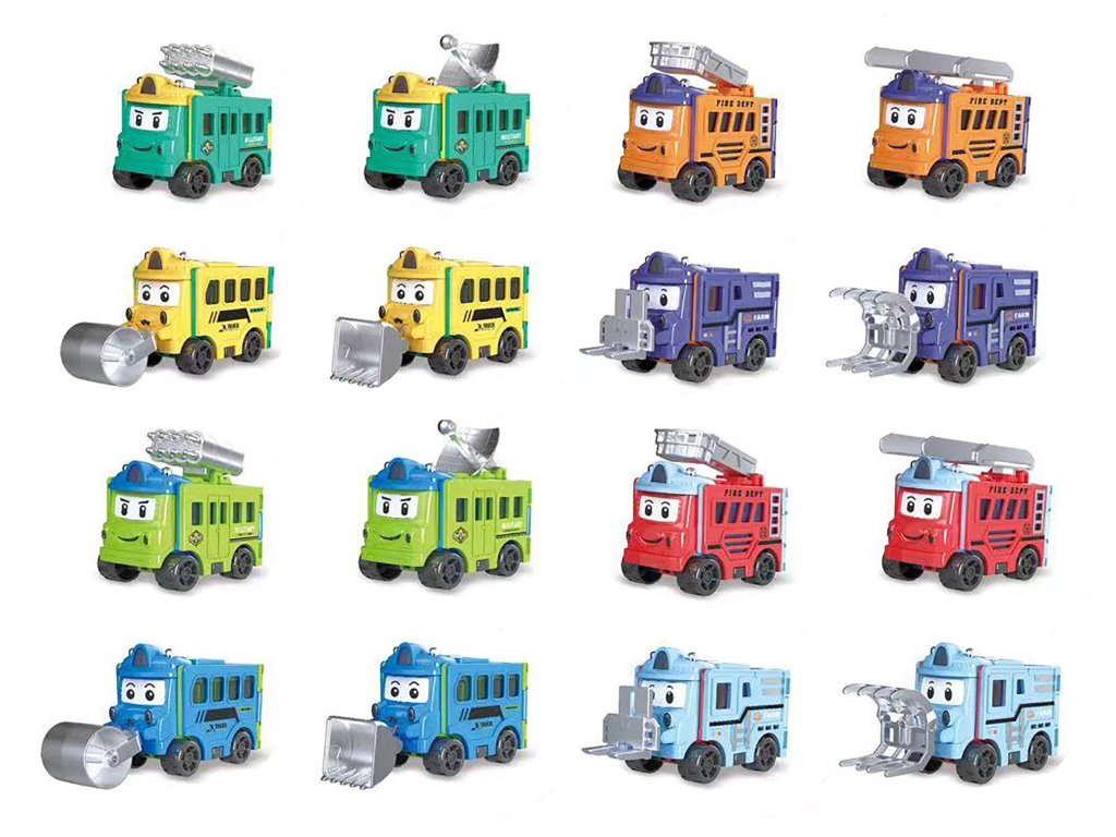 transformační. Rozměry 11x5,5x11 cm. Na zpětné natažení. 8 ks display box. 8 variant.
