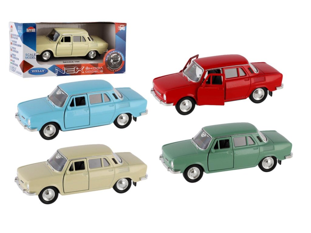 Auto Welly Škoda 100 kov/plast 11cm 1:34 na volný chod 4 barvy v krabičce 15x7x7cm