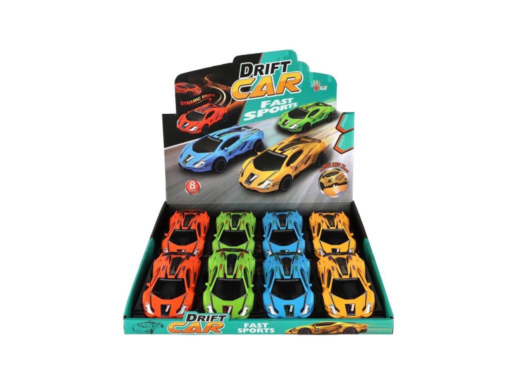 Auto závodní driftovací plast 16cm na setrvačník 4 barvy 8ks v boxu