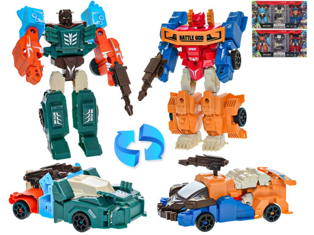 Auto závodní/robot Deformation Warrior transrobot set 2ks s doplňky 3 barvy