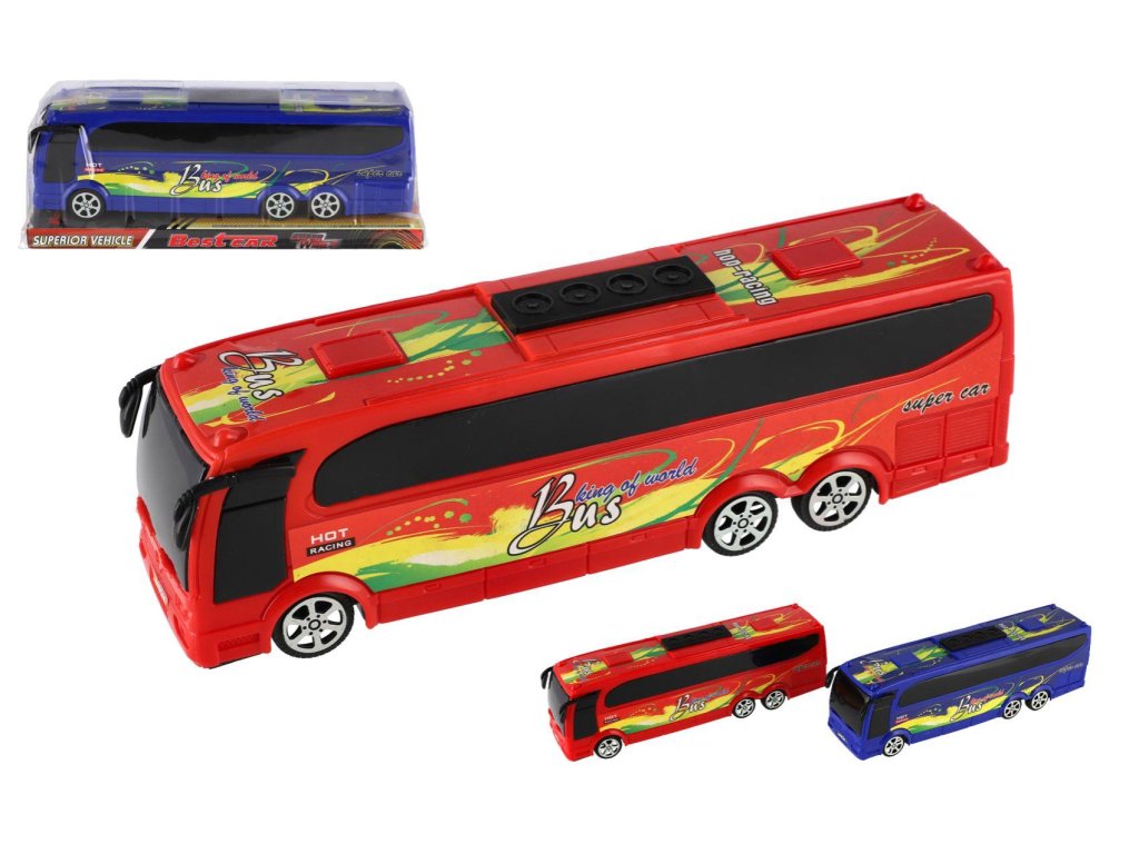 Autobus plast 25cm na setrvačník 2 barvy v krabičce