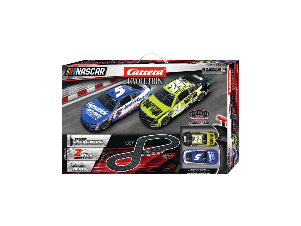 V USA jsou závody NASCAR nejnavštěvovanějším motoristickým sportem. Autodráha Carrera EVOLUTION 'NASCAR' přináší americký výkon motoru do obývacích pokojů světa. S délkou 5,3 metru má tato závodní dráha dlouhé rovinky a zatáčky, takže je ideální pro vysokorychlostní souboje. Dvě auta Chevrolet Camaro NextGen ZL1 ze závodního týmu Hendricks Motorsports vyjíždějí na rošt. Vůz číslo 5 řídí Kaliforňan Kyle Larson, vítěz šampionátu 2021, zatímco vůz číslo 24 závodí týmový kolega William Byron ze Severní Karolíny. Výsledek šampionátu Living Room Cup je nakonec pouze v rukou těch řidičů, kteří drží ovladače Carrera.
