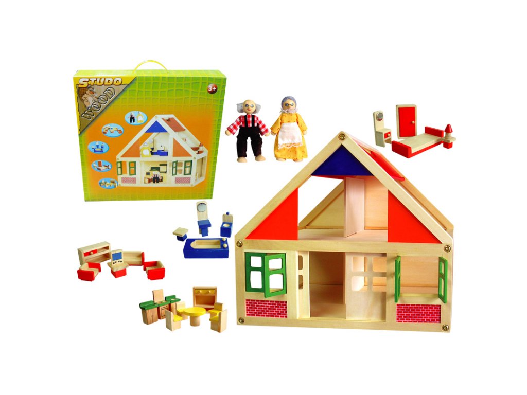 BABU - Domeček pro panenky s příslušenstvím + 2 figurky