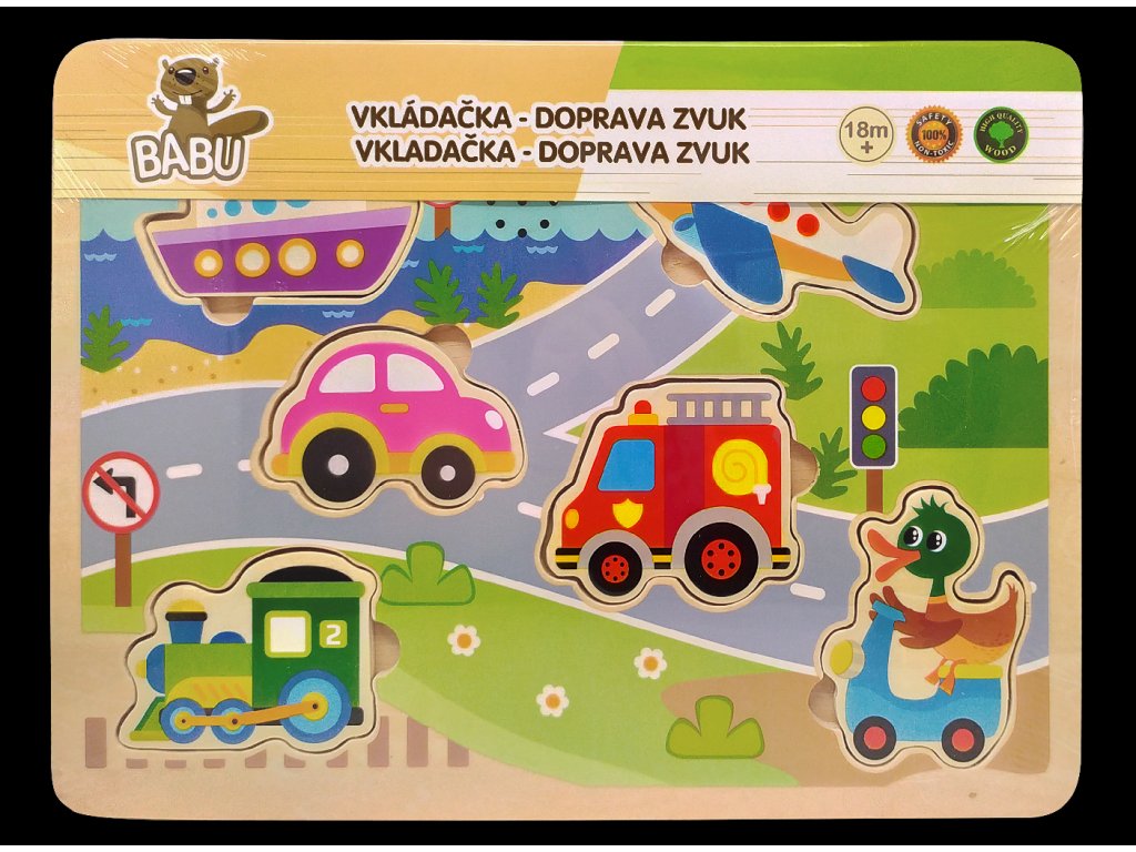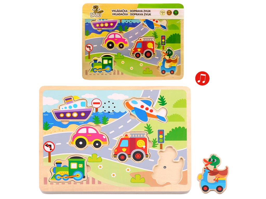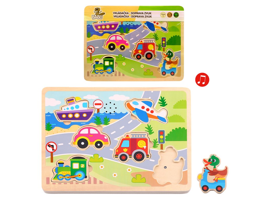 BABU - Dřevěná vkládačka dopravní prostředky se zvukem L064