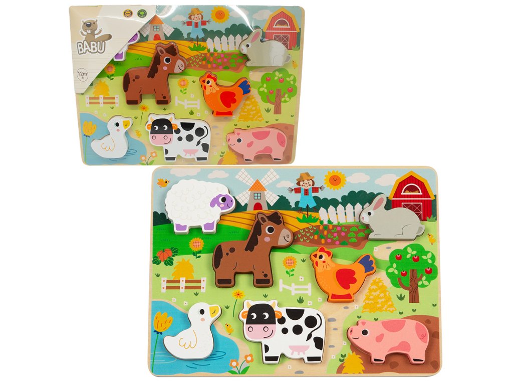 BABU - Dřevěné vkládací puzzle malá FARMA
