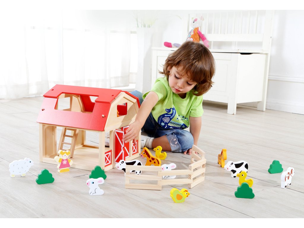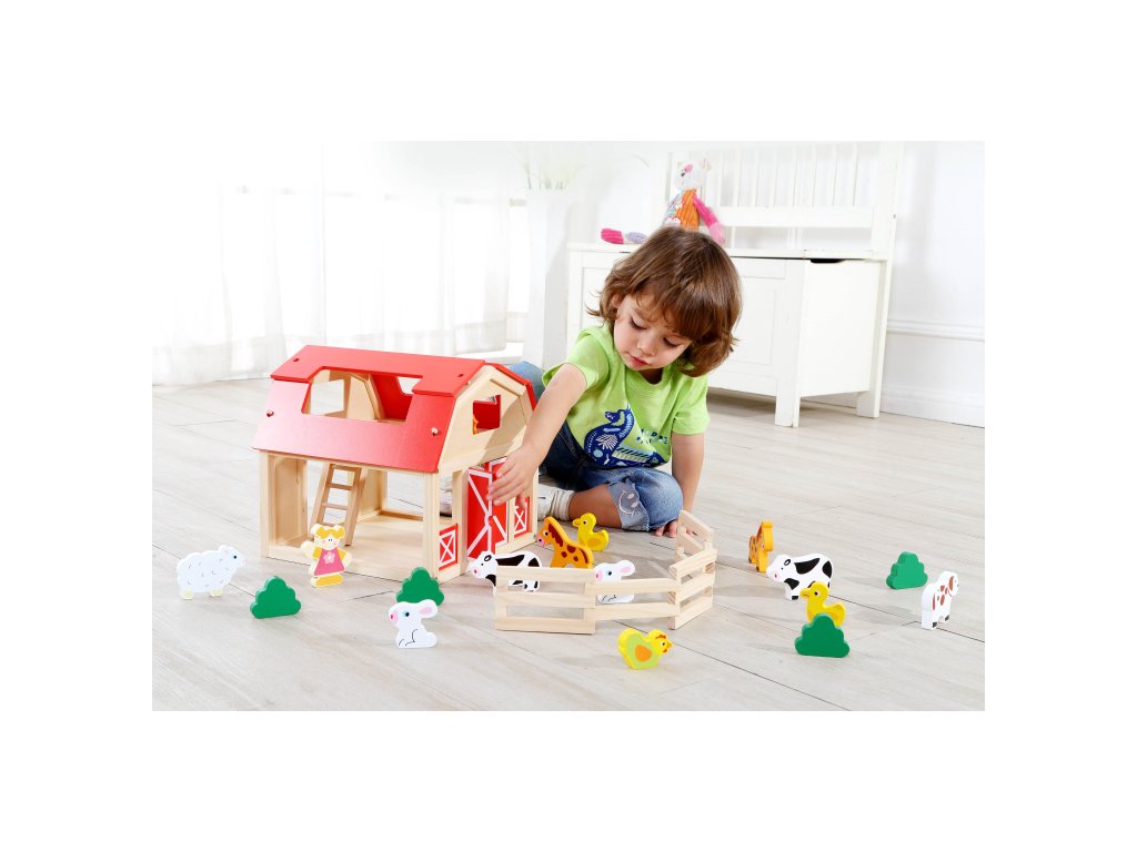 Dřevěná farma s plotem a spoustou zvířátek, která jsou vyrobena z kvalitního materiálu. Užij si svůj život na farmě! - Věk 3+