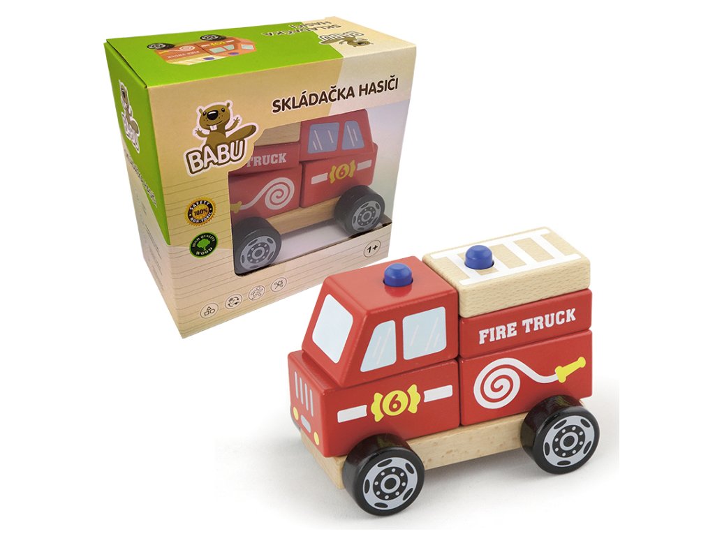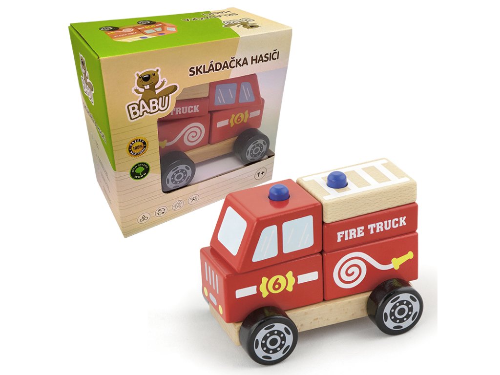 Jednotlivé části autíčka se dají vyndávat a skládat, dle libosti, díky čemuž si procvičuje pohybové cítění a koordinaci vjemů dítěte. Je vyrobené celé ze dřeva a zabalené v praktickém boxu. - Věk 18m+