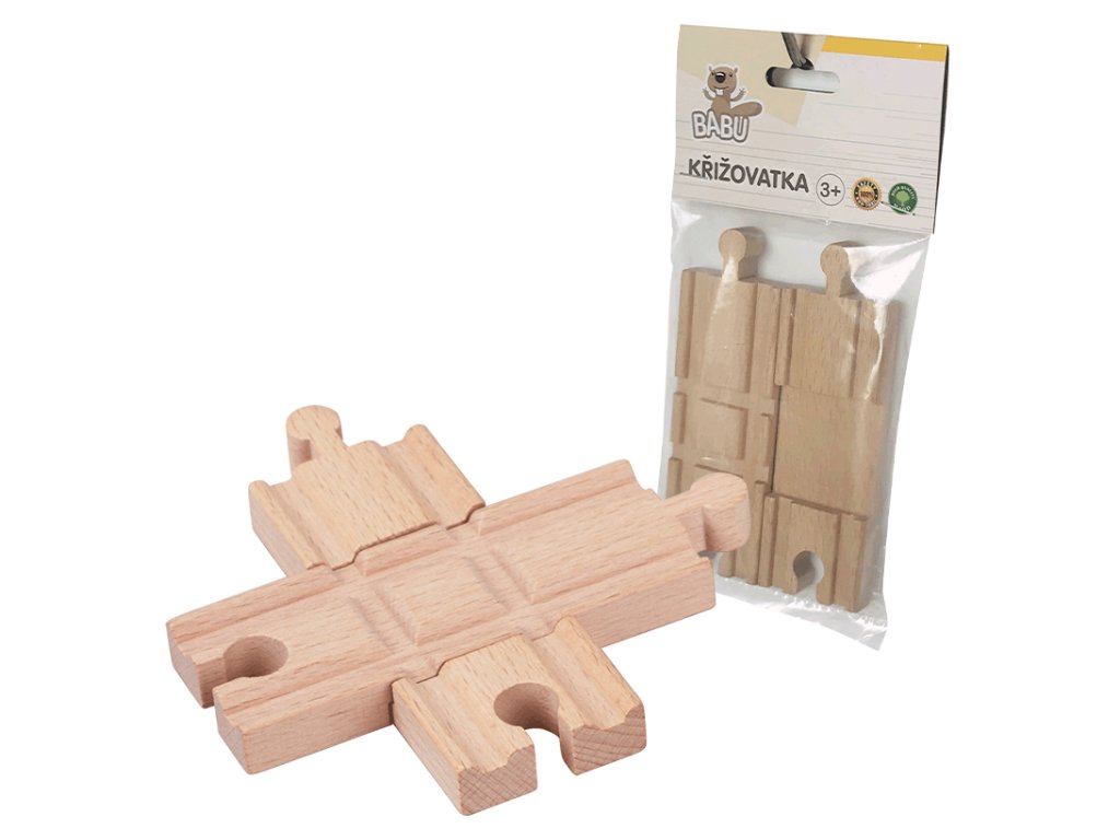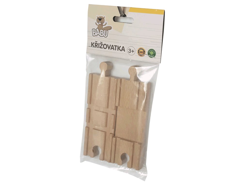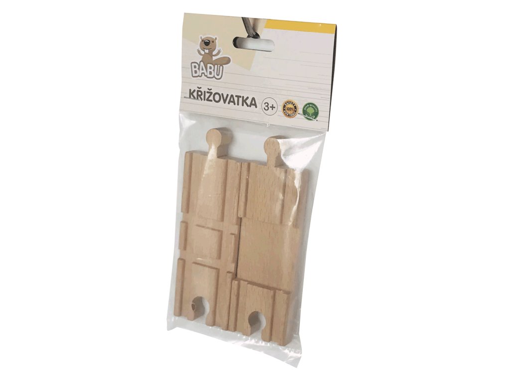 Křižovatka je důležitým stavebním dílkem pro rozšíření vláčkodráhy. Zapadá do vláčkodrah jako jsou Maxim, Brio, Bino,Heros, Thomas a stala se tak universálním dílkem spolu s dalšími doplňky od Babu. Přinese do vláčkodráhy další variantu vedení trati. **Přednosti:** - kvalitní dřevěný materiál - kompatibilita s jinými značkami ------------------- **Obsah balení:** - 2 dílky ------------------- - Vhodné pro děti od 3 let - Materiál: dřevo, plast - Délka: 11cm / jeden díl - Celkem: 2 kusy