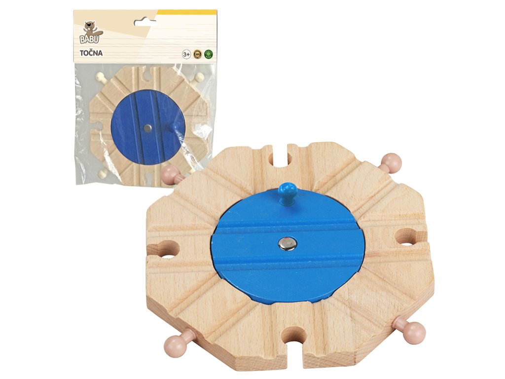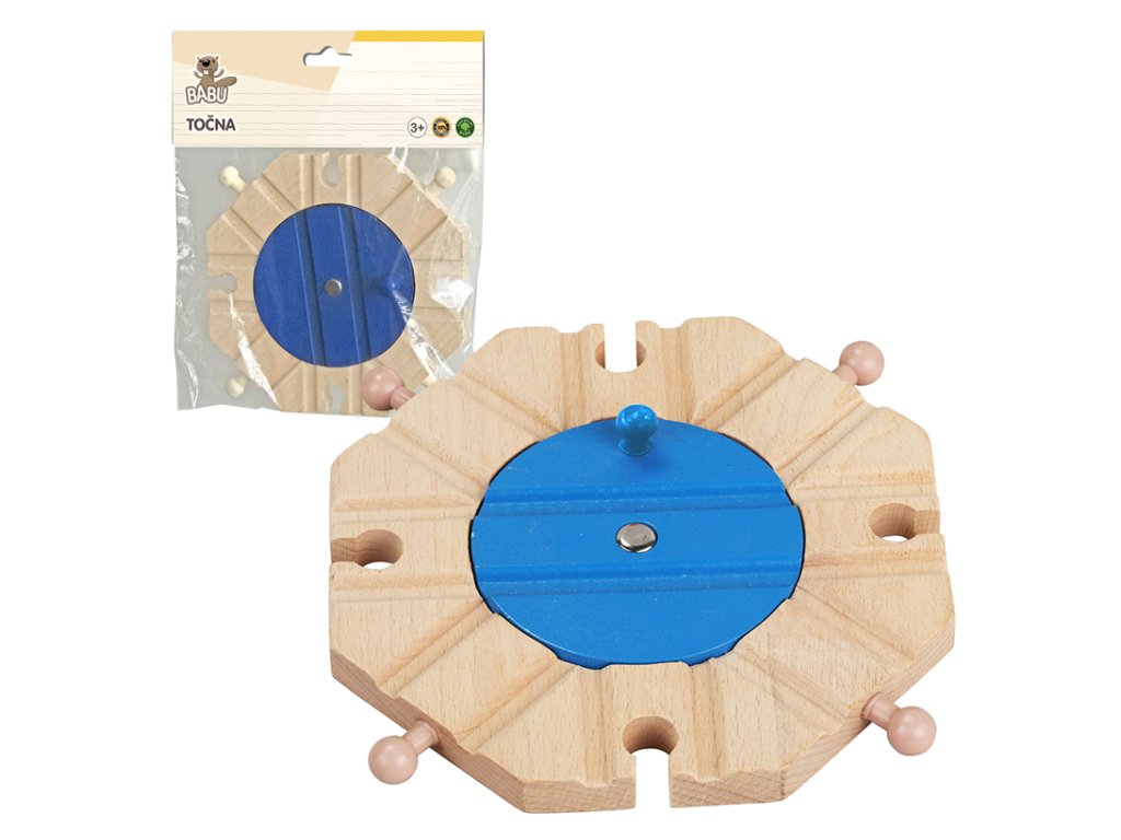 Točna pro mašinky je důležitým stavebním dílkem pro rozšíření vláčkodráhy. Zapadá do vláčkodrah jako jsou Maxim, Brio, Bino,Heros, Thomas a stala se tak universálním dílkem spolu s dalšími doplňky od Babu. Přinese do vláčkodráhy další variantu vedení trati. **Přednosti:** - kvalitní dřevěný materiál - kompatibilita s jinými značkami ------------------- - Vhodné pro děti od 3 let - Materiál: dřevo - Rozměry: cca 12x12cm