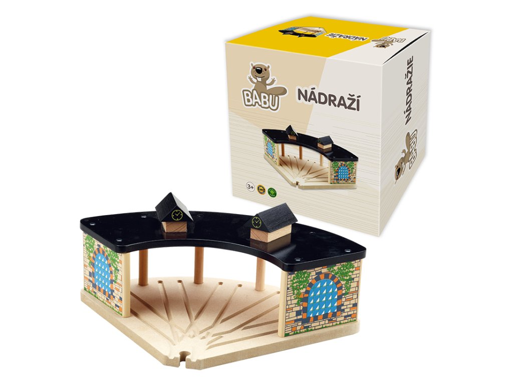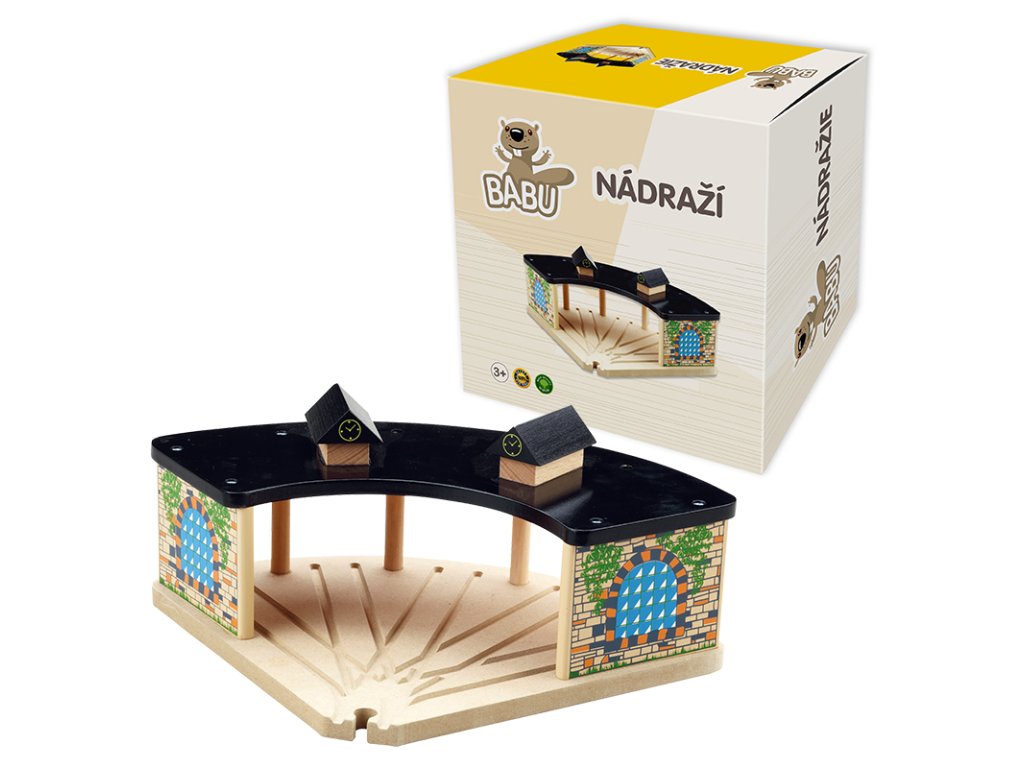 Nádraží je důležitým stavebním dílkem pro rozšíření vláčkodráhy. Zapadá do vláčkodrah jako jsou Maxim, Brio, Bino,Heros, Thomas a stala se tak universálním dílkem spolu s dalšími doplňky od Babu. Přinese do vláčkodráhy další variantu hry. **Přednosti:** - kvalitní dřevěný materiál - kompatibilita s jinými značkami ------------------- - Vhodné pro děti od 3 let - Materiál: dřevo - Rozměry: cca 35x25cm / jeden díl
