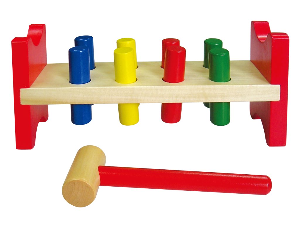 - Velmi oblíbené hračky ze dřeva. Klasická zatloukačka ze dřeva určená pro nejmenší děti. - Barevná dřevěná hračka obsahuje destičku, barevné kolíky na zatloukání a dřevěné kladívko. - Děti se trefují kladívkem do kolíčků a zatloukají je až na druhou stranu. - Z kolekce dřevěné hračky od kvalitní značky BABU. - Rozměr hračky: cca 28,5x11,5x8cm