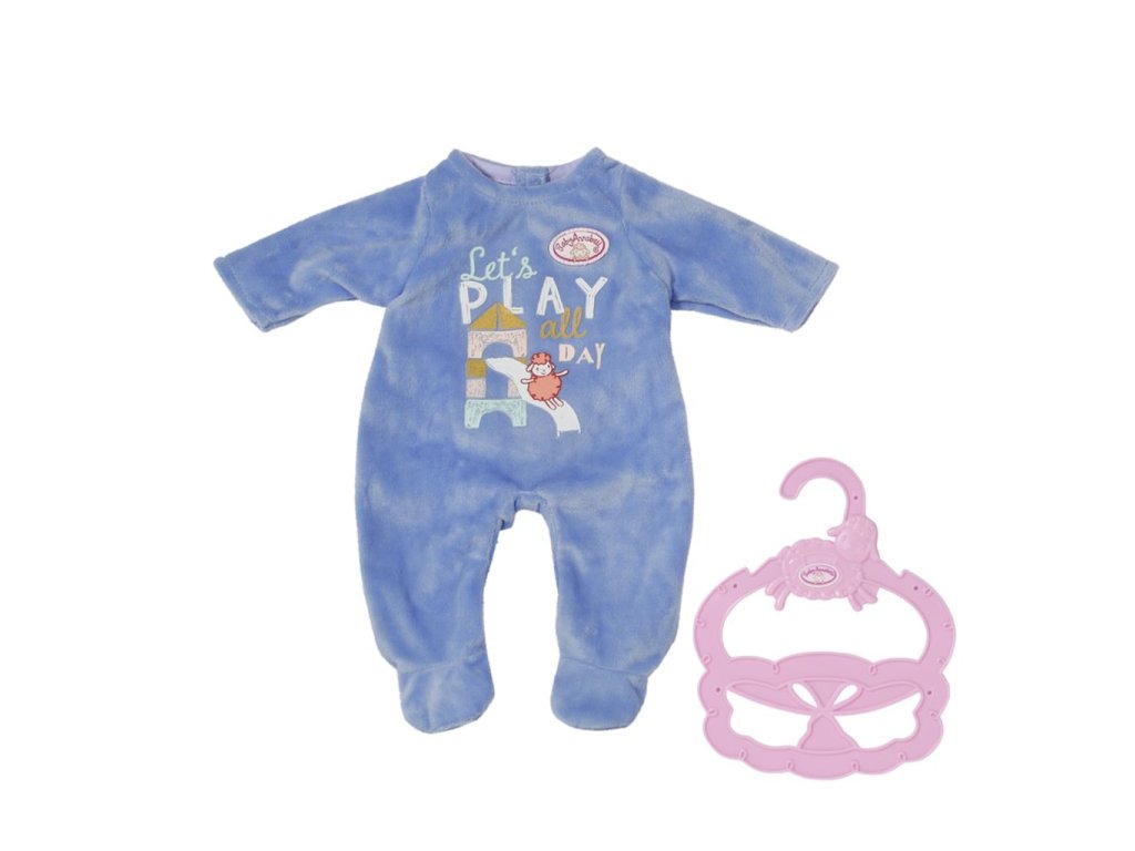 Panenka Baby Annabell Little by si se svou malou maminkou nejraději hrála celý den. Má to i napsáno na potisku heboučkých dupaček: Let’s play all day. K tomu je samozřejmě zapotřebí pohodlné oblečení. Modrá souprava je vyrobena ve střihu „easy fit“ a její převlékání hravě zvládnou i nejmenší ručičky.