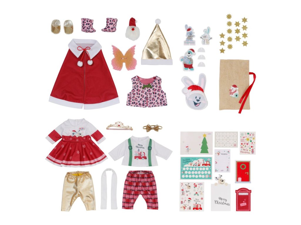Očekávání je ta největší radost! BABY born už se také moc těší na Vánoce. Předvánoční čas zpříjemní BABY born Adventní kalendář. Za každým ze 24 okének se ukrývá skvělé překvapení: buď malé dárkové předměty, doplňky nebo části některého ze dvou kompletních slavnostních outfitů, pro BABY born Emmu, Carlu, Conrada a medvídka Teddyho.