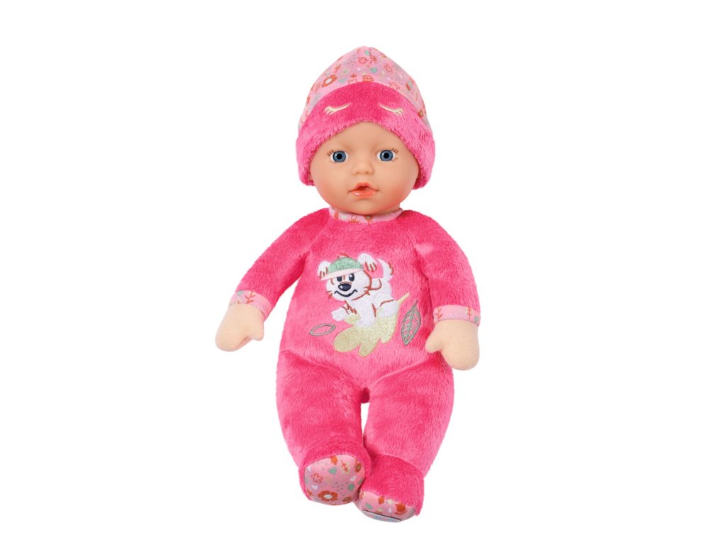 BABY born for babies Spinkáček tmavě růžový je panenka velikosti 30 cm s chrastítkem uvnitř.