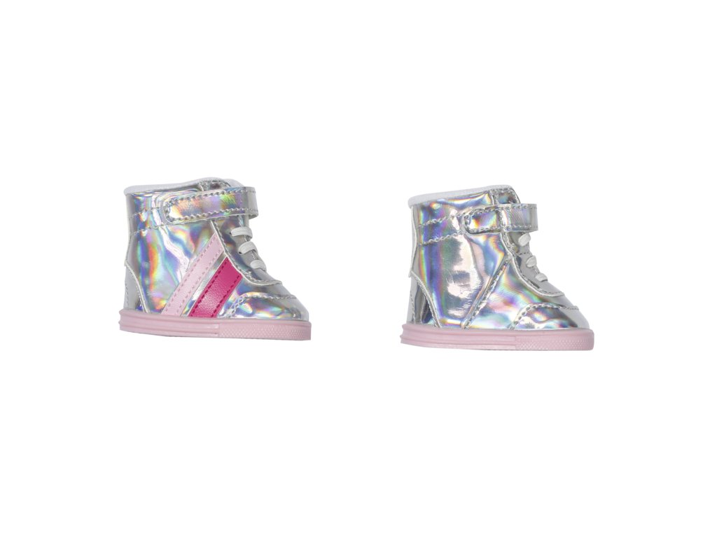 BABY born si libuje v těch nejskvělejších botičkách. Vysoké holografické boty září již z dálky. Módní tenisky jsou po stranách ozdobeny pruhy ve světle a tmavě růžové barvě. Po důkladném zavázání a zpevnění suchými zipy v nich může BABY born běžet třeba až na konec světa.