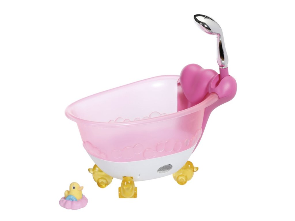 • Vana pro panenky v elegantním stylu. • Panenka se koupe ve skutečné vodě. • Elektronické funkce. • Stisknutím stříbrného tlačítka na boku se spouští voda ze sprchy a zazní melodie. • Nohy vany ve tvaru kačenek svítí do rytmu melodie. • Součástí je roztomilá kačenka do vany. • Se světelnými a zvukovými efekty. • Funguje na baterie. • Baterie: 4x LR6/AA, nejsou součástí balení. • Doplňky na hraní pro děti od 3 let. • Pro panenky velikosti 36 a 43 cm. • Skvěle se hodí k dalším doplňkům pro panenky BABY born z kolekce Koupelna, které je možné dokoupit samostatně: BABY born Sprchový kout, BABY born Retro umyvadlo a BABY born Kouzelná toaleta. • Balení: obal bez plastů – barevná krabice s obrázky produktu.