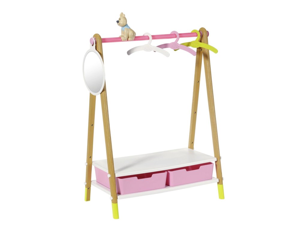 BABY born Stojan na oblečení se zrcadlem s odnímatelnou ozdobou v podobě pejska. Včetně 3 ramínek na oblečení a 2 zásuvek.