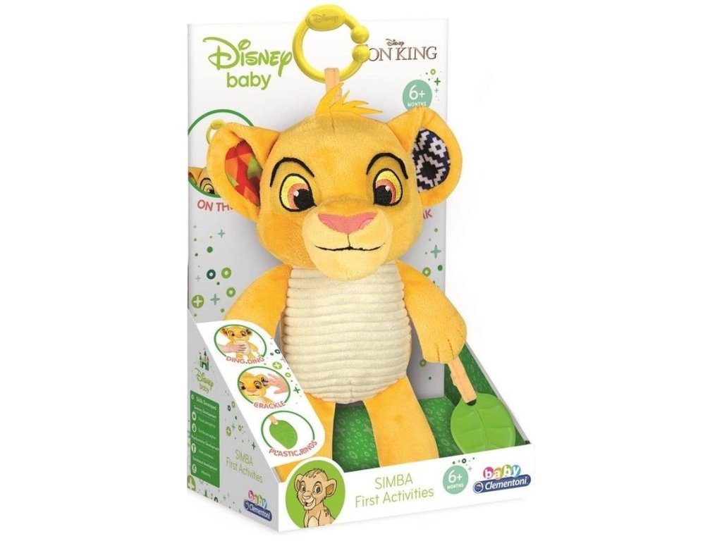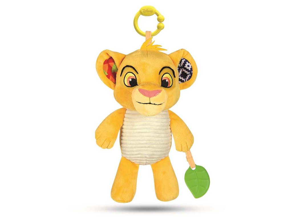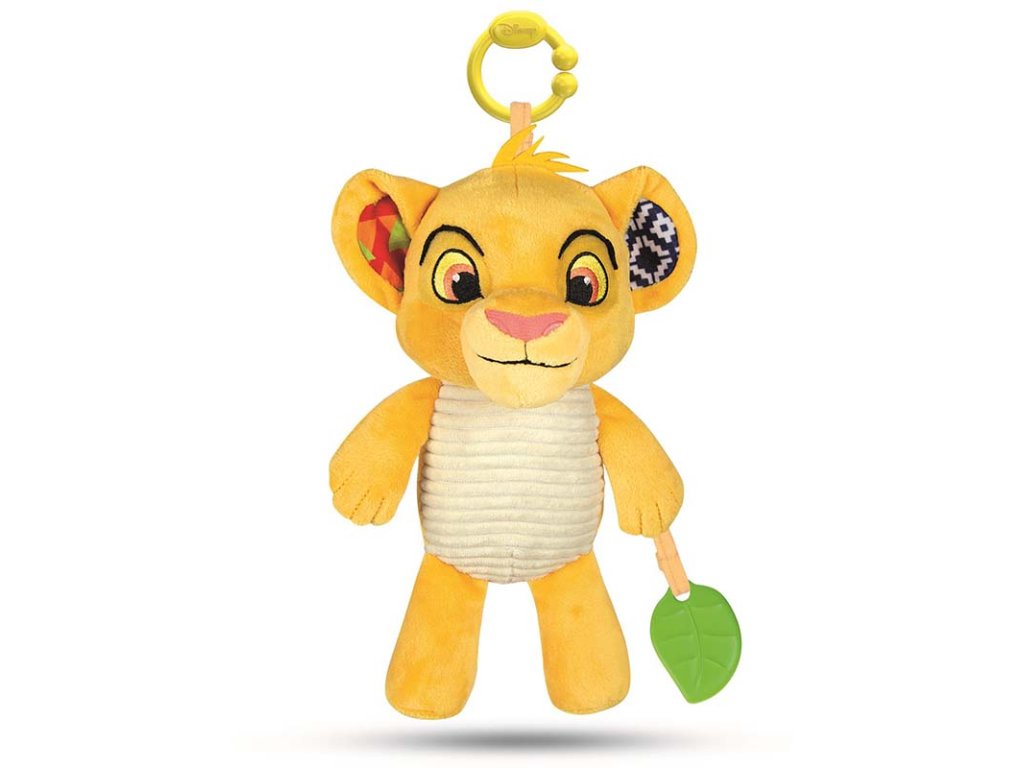 Lvíček Simba z pohádky Lví král pro nejmenší, kterého jednoduše upevníte na autosedačku nebo kočárek. Vyrobený je z příjemného měkkého materiálu obsahuje i kousátko, chrastítko. Když mu zatlačíš na bříško lvíček zapíská. Rozvíjí vizuální a zvukové schopnosti dítěte.