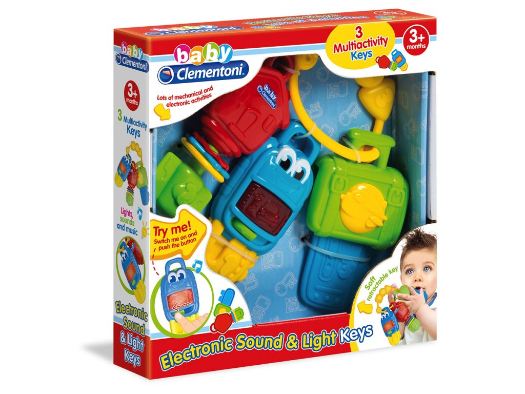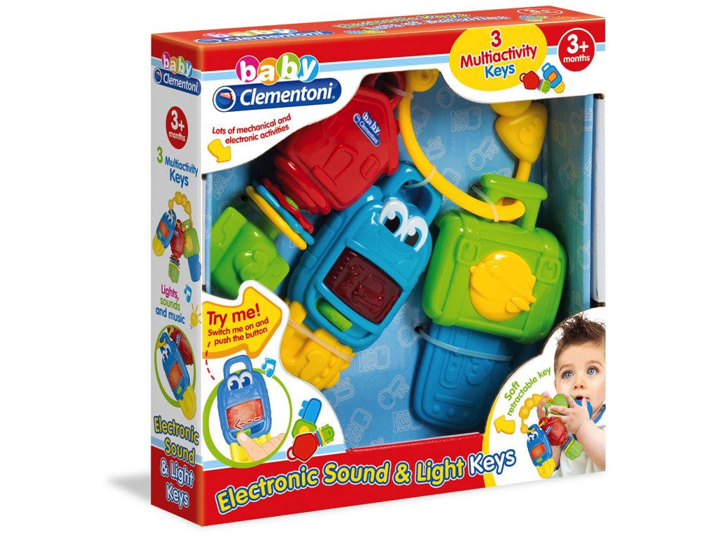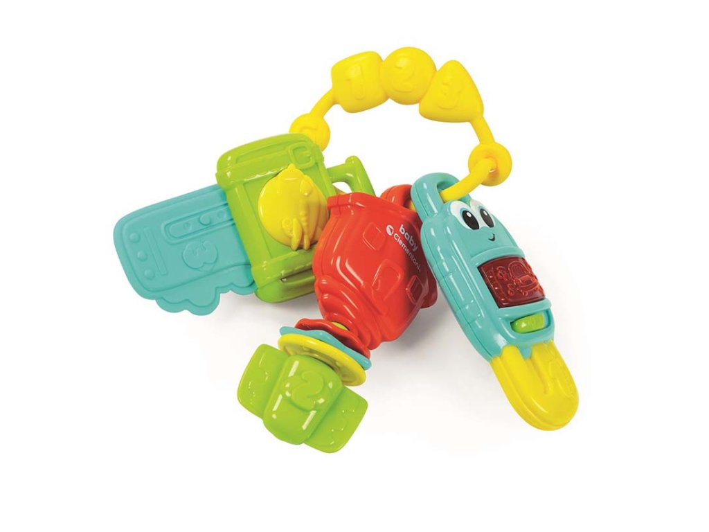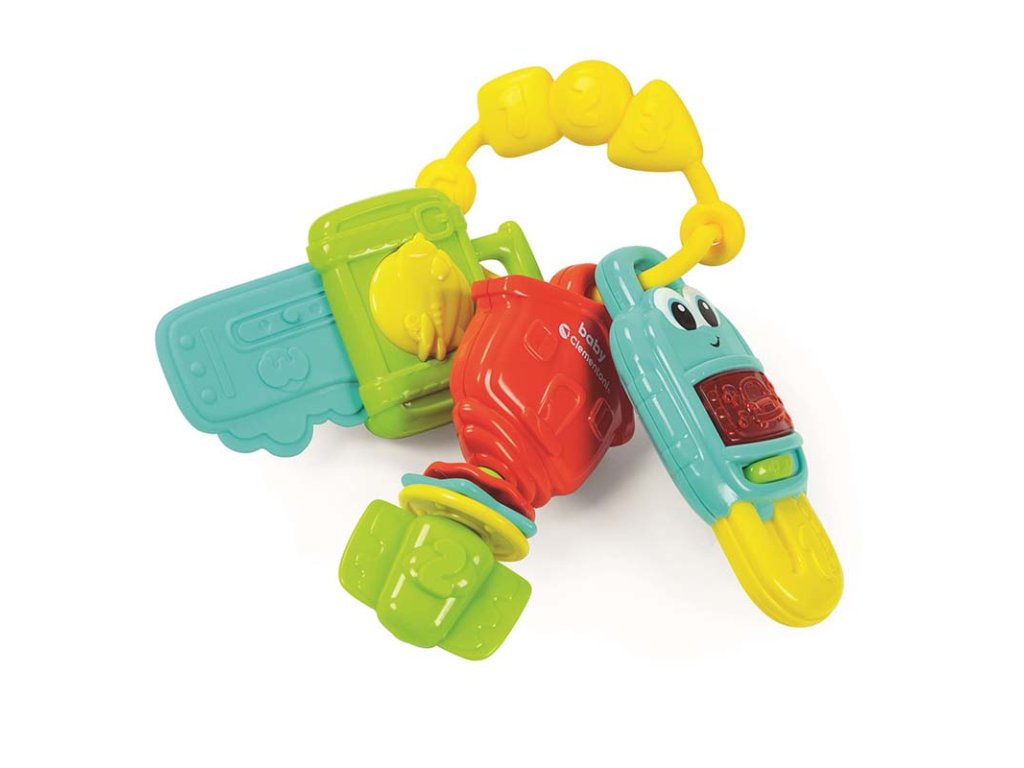 Zábavné klíče s více funkcemi pro vaše nejmenší. Hračka obsahuje klíčenku, která vydává zvuky a svítí či prvky ke kousání. Rozvíjí manuální dovednosti dítěte a jeho smyslové vnímání.