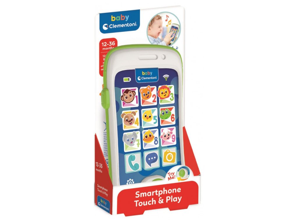 Smartphone touch and play je elektronická imitace s dotykovou membránou a 12 dotykových tlačítek se zvířecími zvuky a hudbou. Zábavný vzdělávací smartphone, ze kterého budete "volat" jako máma a táta. Se spoustou melodií a zvukových efektů. S hmatovou technologií se znalosti získávají hmatem. Provází dítě světem zvířat a jejich zvuků. Se 3 barevnými LED světly. Obsahuje baterie: 2xAAA/LR03. Rozměr balení: 10x20x4cm. Věk: 12m+