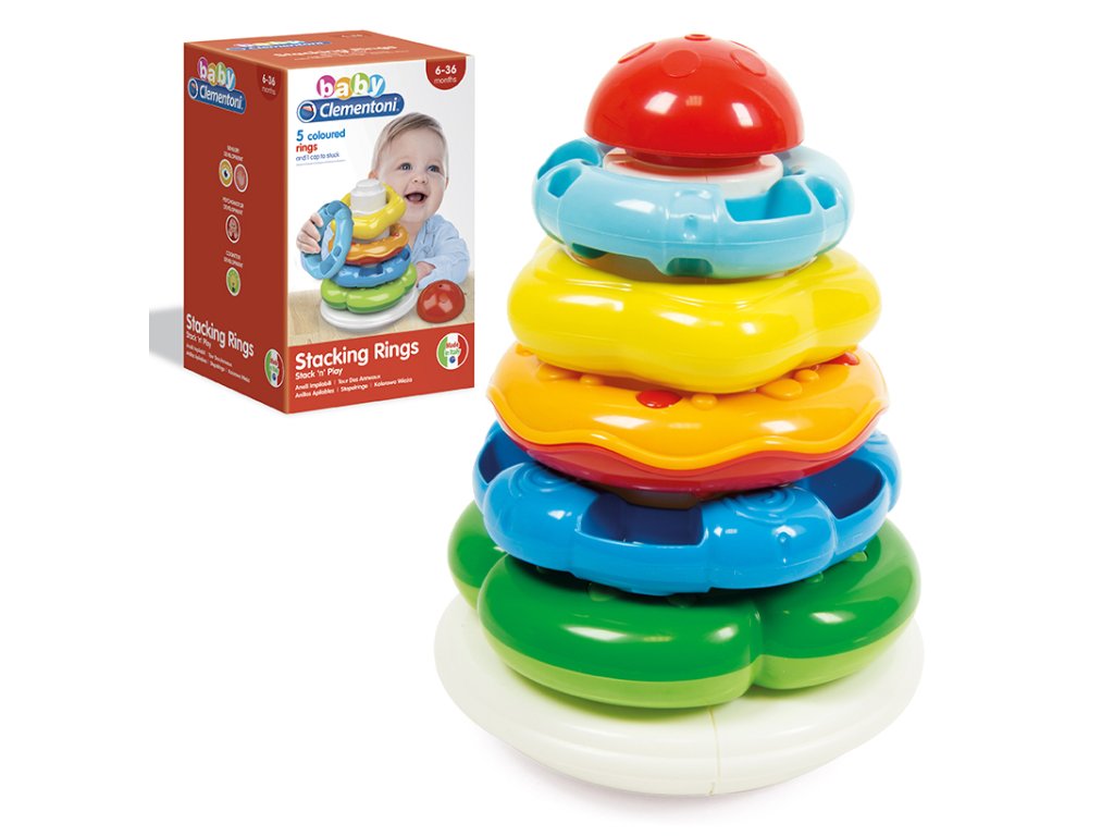S touto barevnou pyramidou z kroužků se snadno naučíš rozeznávat barvy a velikosti. Různorodá struktura povrchu kroužků navíc stimuluje hmat a manuální dovednosti. - Rozměry 25x16x15cm.