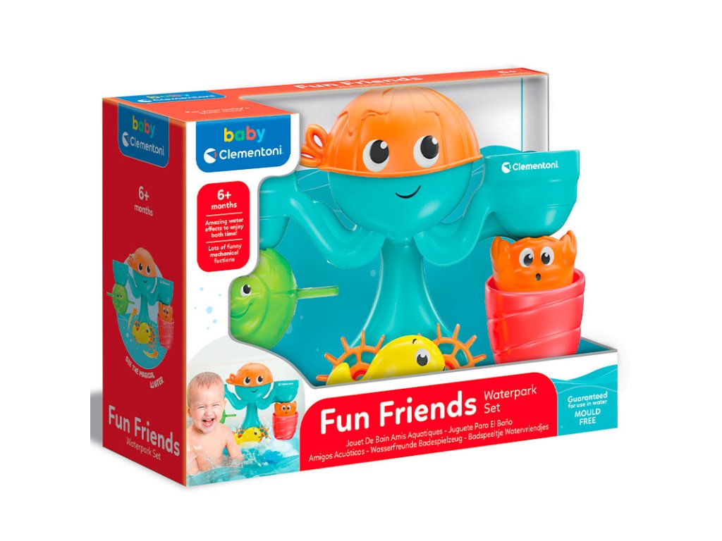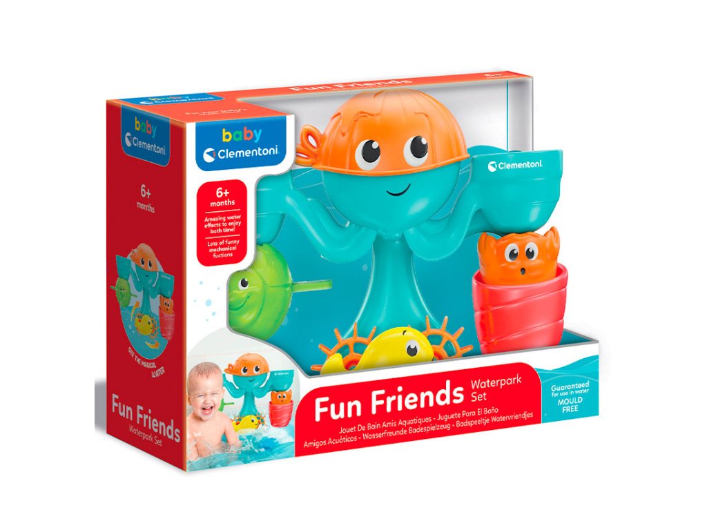 Kamarádí a barevná chobotnice pro tvé srandovní hrátky s vodou ve vaně. Vhodné pro děti od 10m.