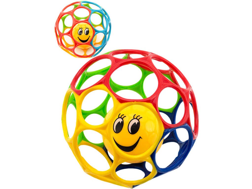 Tento pružný a ohebný míček s chrastítkem, v podobě žlutého balonku smajlíka uvnitř, je ideální na rozvoj motoriky a smyslů dítěte. Chrasticí hračka pro nejmenší děti, ve dvou barevných variantách.