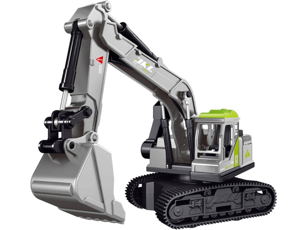 Parádní plastový pásový fukční stavební stroj bagr. Otočná kabina o 360 stupňů. Ovládání ramene pomocí páčky. Pohon na setrvačník. Baleno volně.