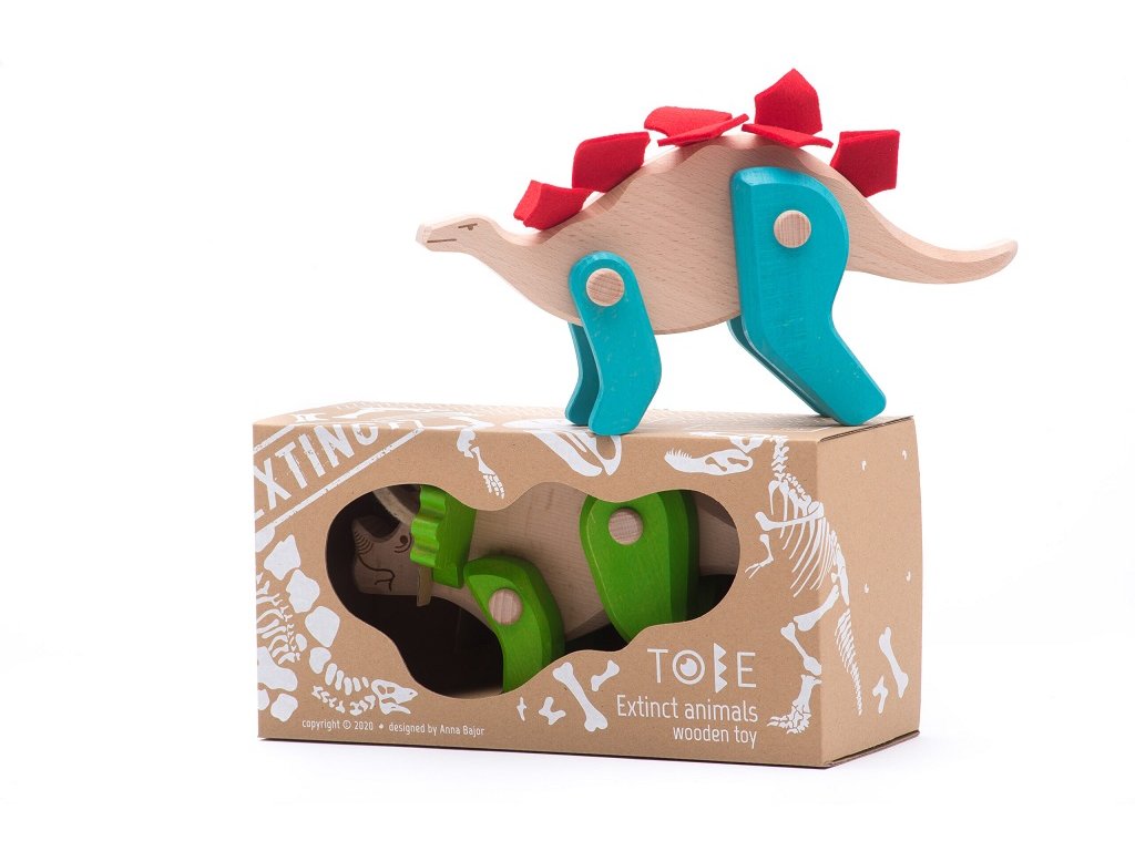 Co je to za dinosaura?Je to Stegosaurus! Býložravý, čtyřnohý dinosaurus podobný ještěrce. Bývalí obyvatelé planety nám připomínají ohrožená zvířata, díky čemuž se k nim stáváme vnímaví a rozvíjíme empatii. Triceratops, gorila i nosorožec proto chtějí ve hrách doprovázet ty, kteří o ně stojí. Nová řada hraček od TOBE realizuje největší sen každého dítěte o kontaktu s dávnými obyvateli země. Jedinečnost dřevěných hraček spočívá v tom, že jsou zcela bezpečné pro zdraví dítěte. Společnost Bajo nabízí mnoho hraček lakovaných barvami, proto je jejich prioritou kvalita a zdravotní nezávadnost, která je potvrzená certifikáty. Kontrolovány a testovány jsou také prvky vyrobené z plastu a kovu. Tato hračka a obal jsou vyrobeny z přírodních zdrojů a lze je snadno recyklovat. Doporučujeme povrch hračky čistit pouze vlhkým hadříkem. Nevystavujte, prosím, tuto hračku vysokým teplotám nebo vysoké vlhkosti, dřevo se za těchto podmínek může ohýbat a deformovat. Splňuje všechny evropské bezpečnostní normy. Hlavní vlastnosti: odolné provedenípodněcuje ke kreativní hře