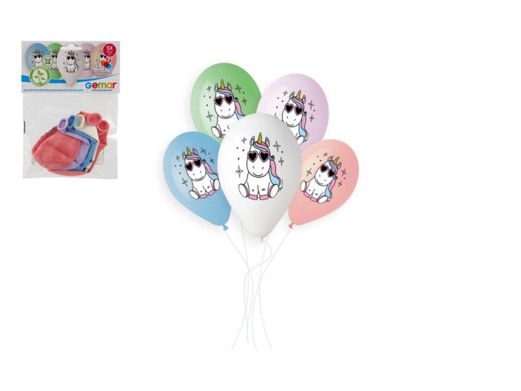 Balonek/Balonky nafukovací s potiskem jednorožec 13'' průměr 33cm 5ks v sáčku