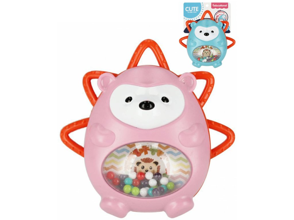 BAM BAM Baby plastové chrastítko a kousátko ježek 2in1 pro nejmenší děti, miminko, velikost 13cm, 2 barvy.